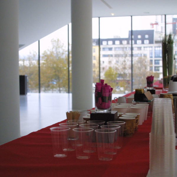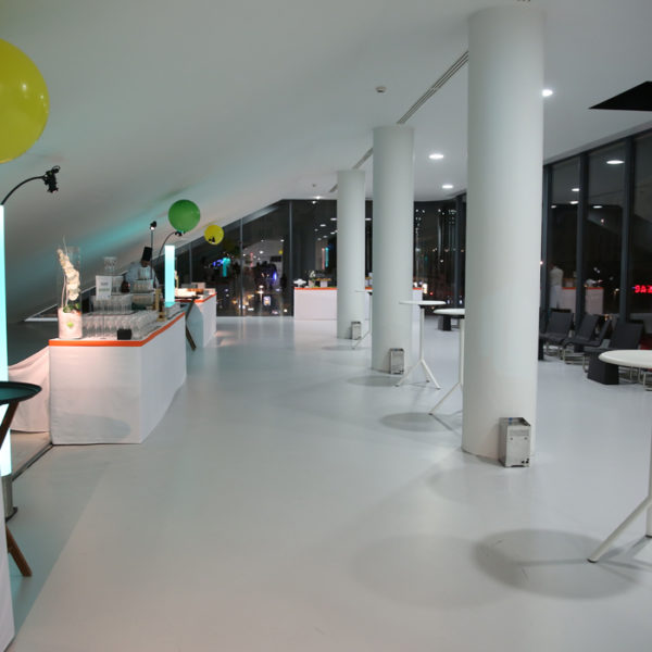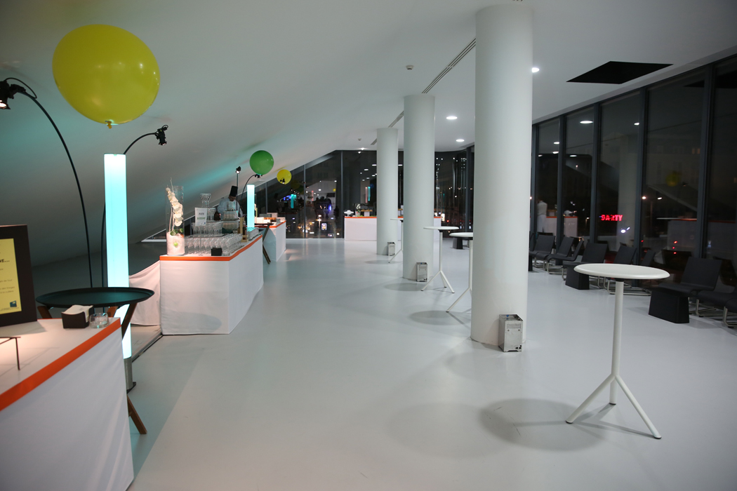 Le foyer 300 est situé dans le prolongement de l’auditorium 300. Espace lumineux, c’est un cadre qui conviendra parfaitement à des pauses-café ou cocktails en marge de vos évènements.