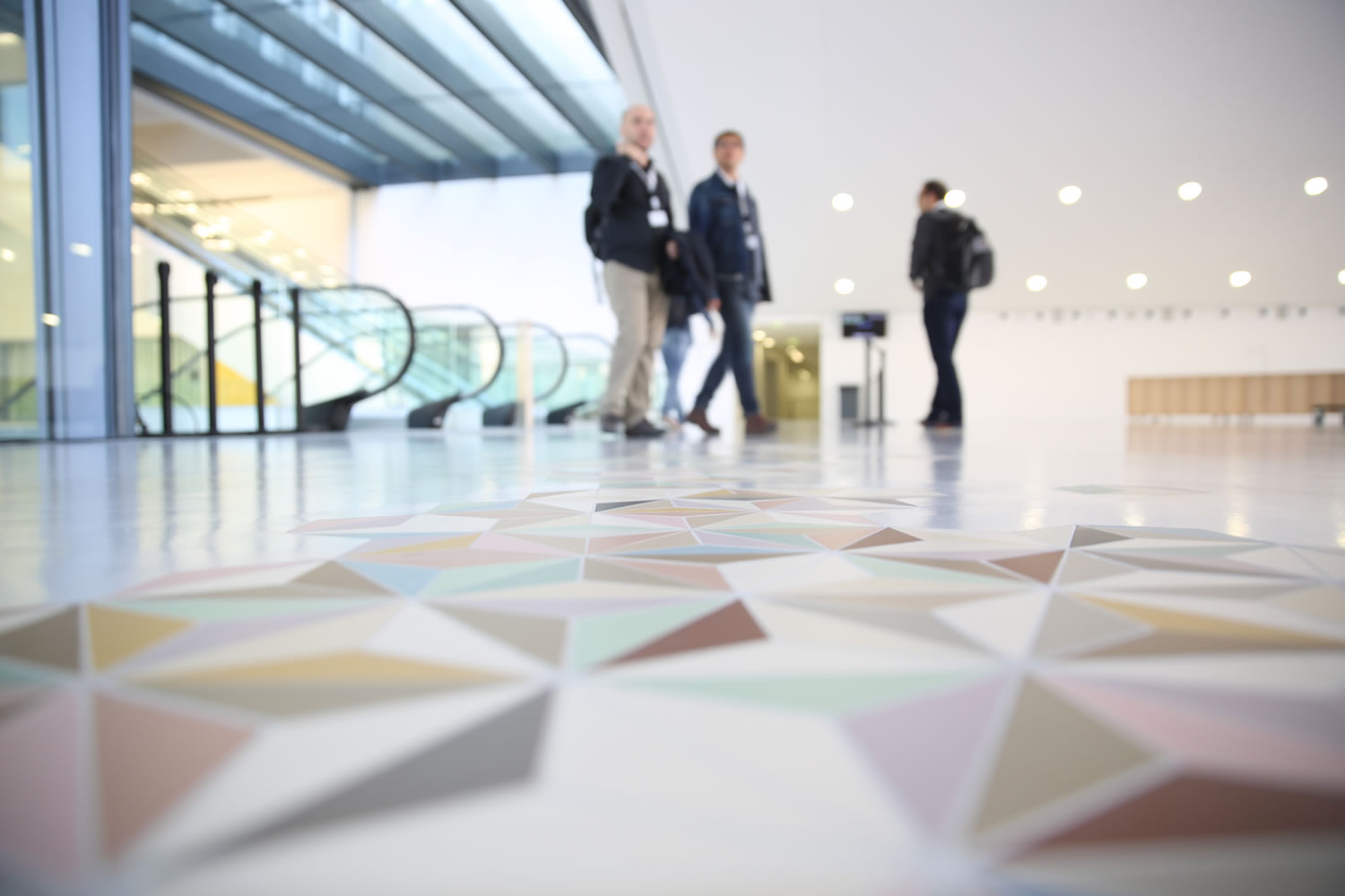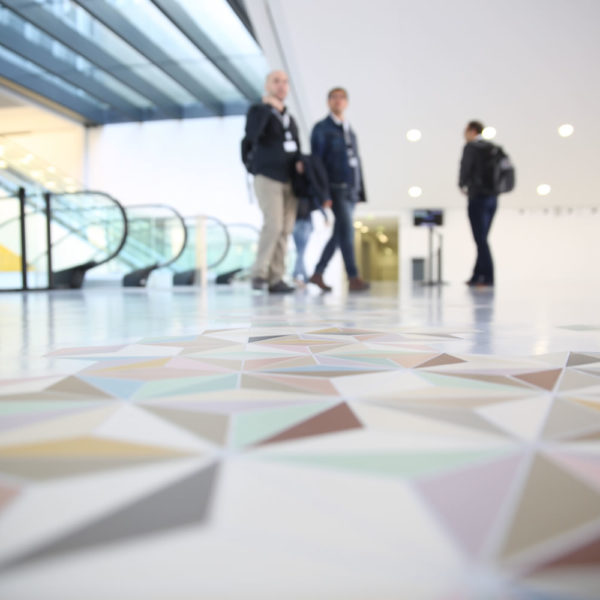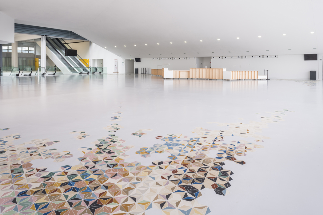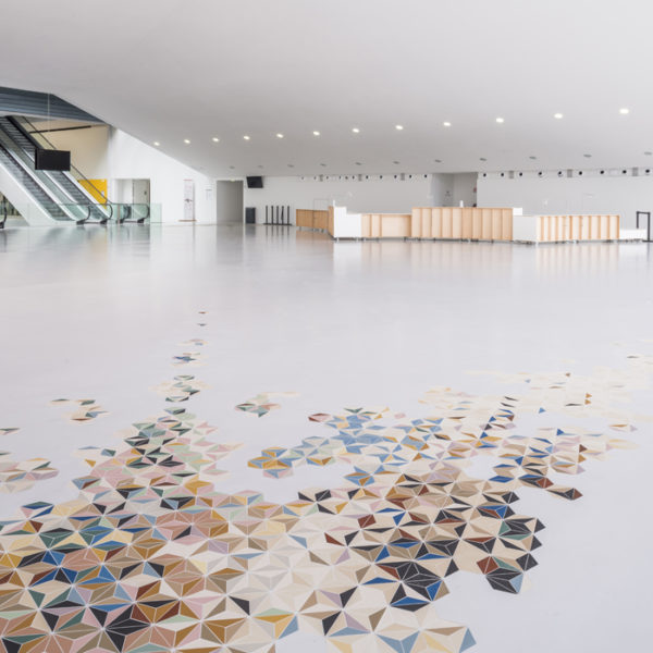 Le mobilier de bar et le tapis en mosaïque est une œuvre imaginée par l’artiste Benjamin Dufour et les architectes-designers Guillaume Eckly et Barbara Fischer, conçue dans le cadre du 1 % artistique*.
