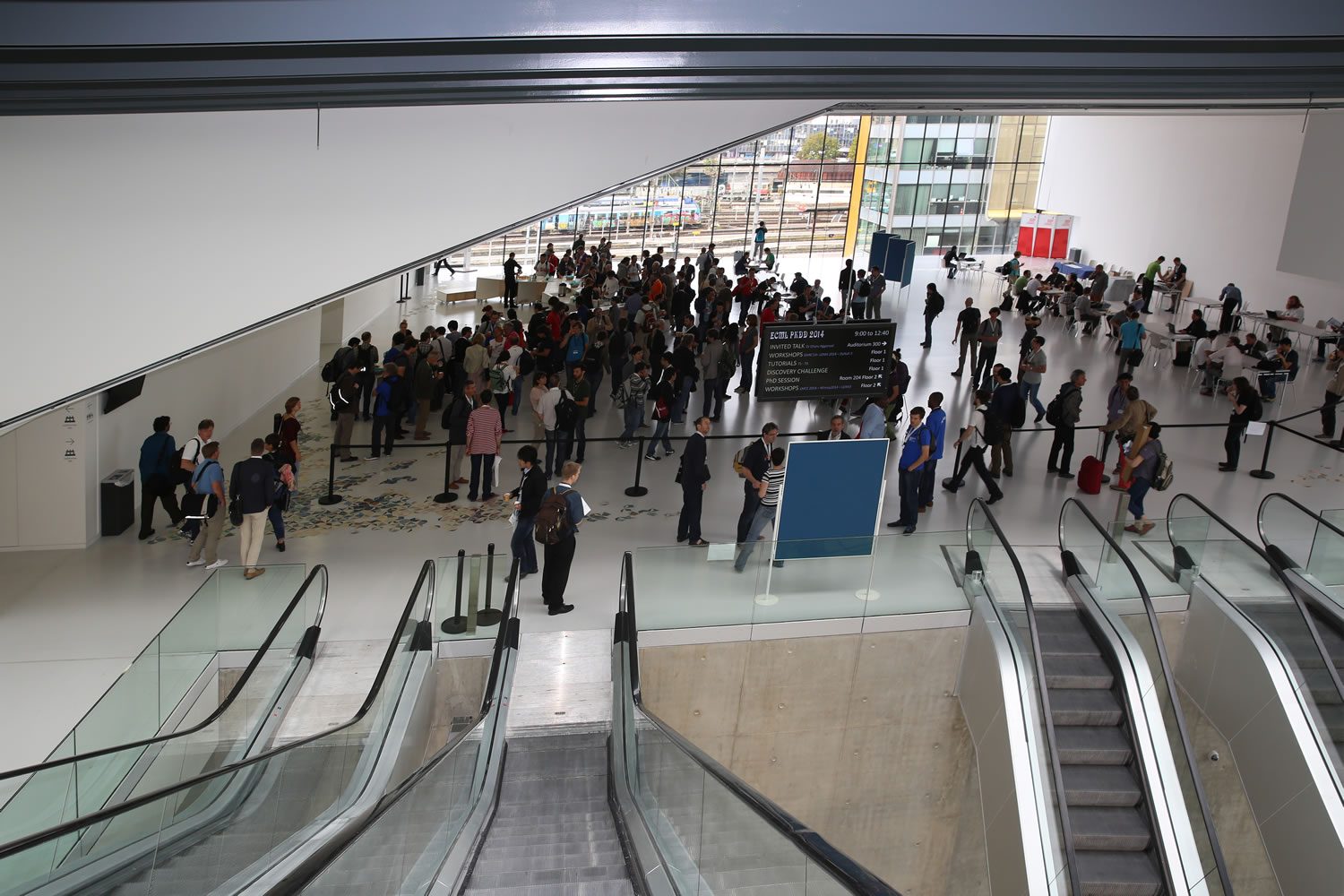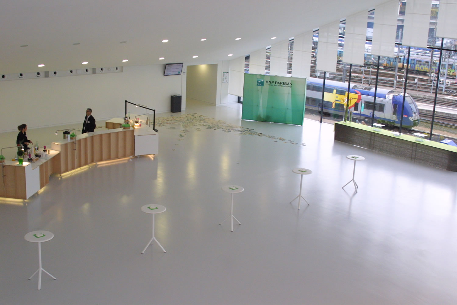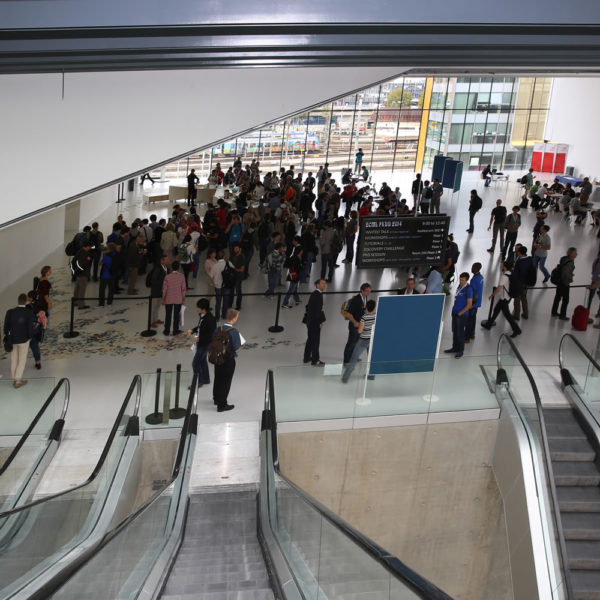 Nous contacterLe foyer 850 offre un volume et une ligne architecturale permettant l’accueil de sessions posters, cocktails et moments de convivialité avec des scénographies sur-mesure. Sa capacité d’accueil maximum est de 900 personnes en format cocktail.