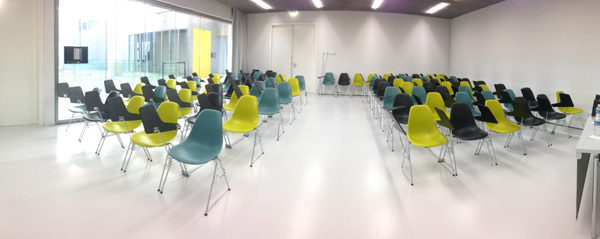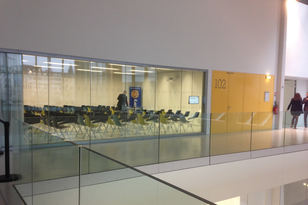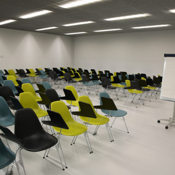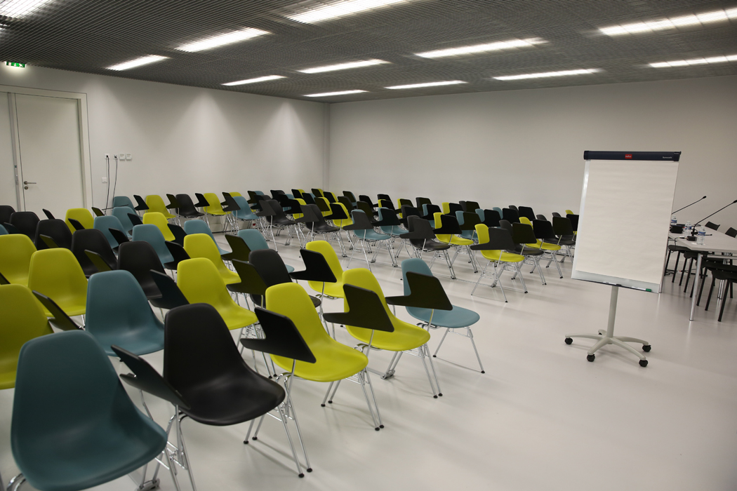 Nous contacterLa salle 102 est une salle de réunion modulable, équipée d’un projecteur full HD à courte focale. Elle peut accueillir 80 personnes dans une configuration classique (chaise + tablettes).
