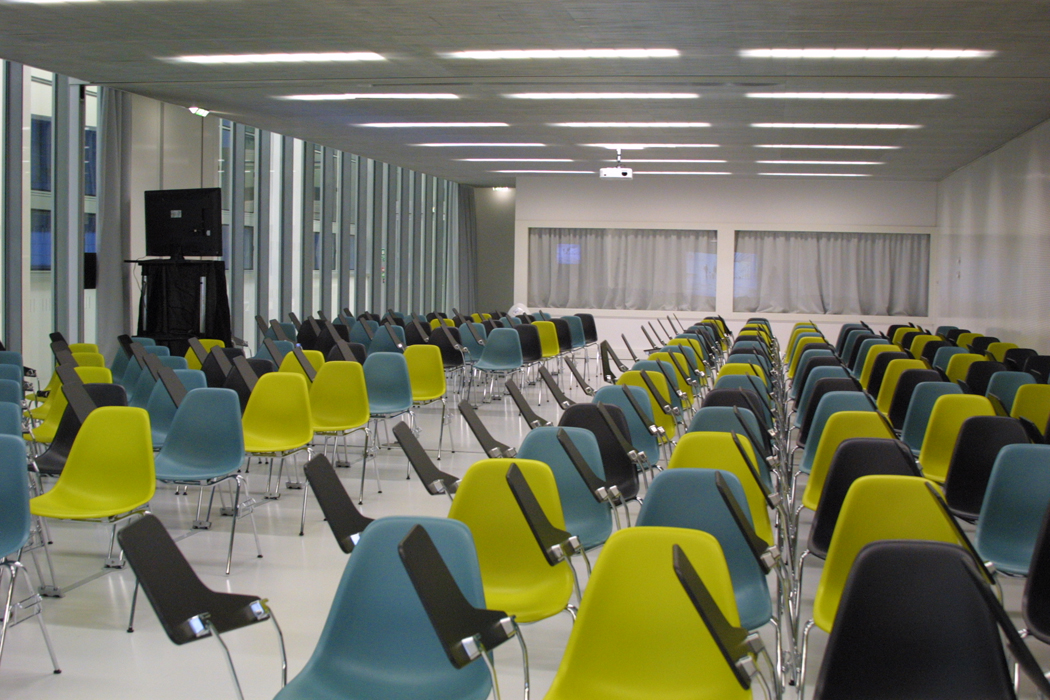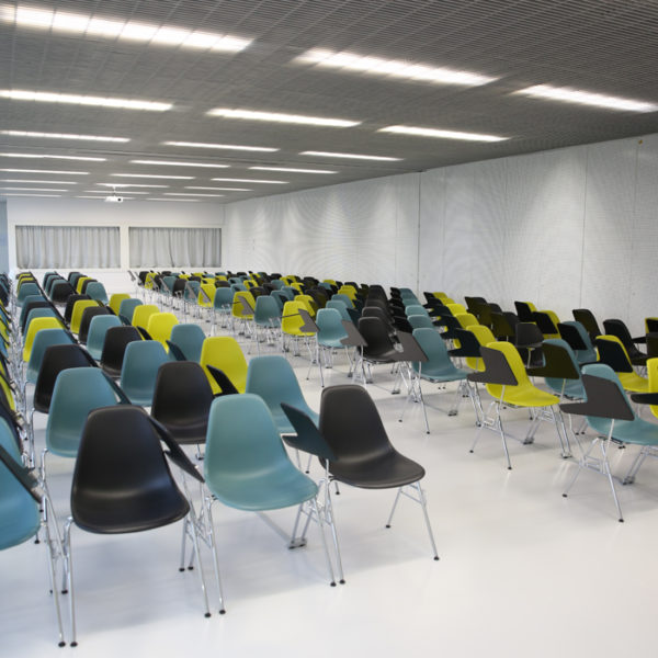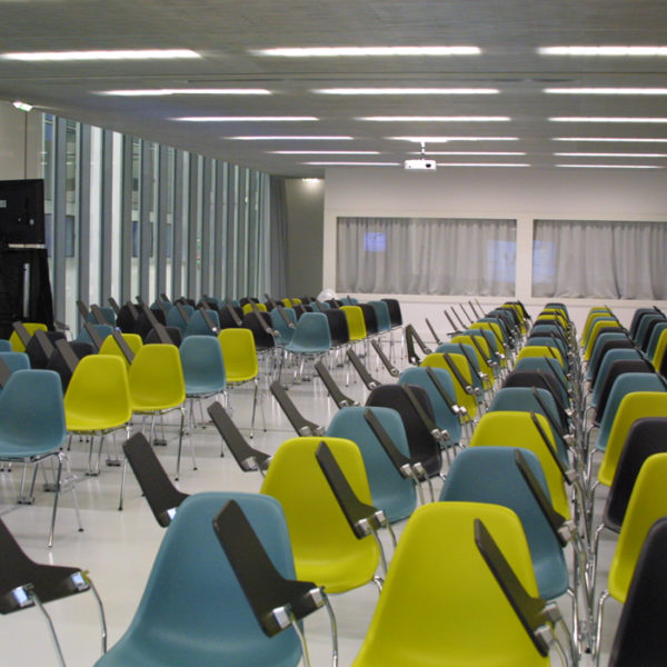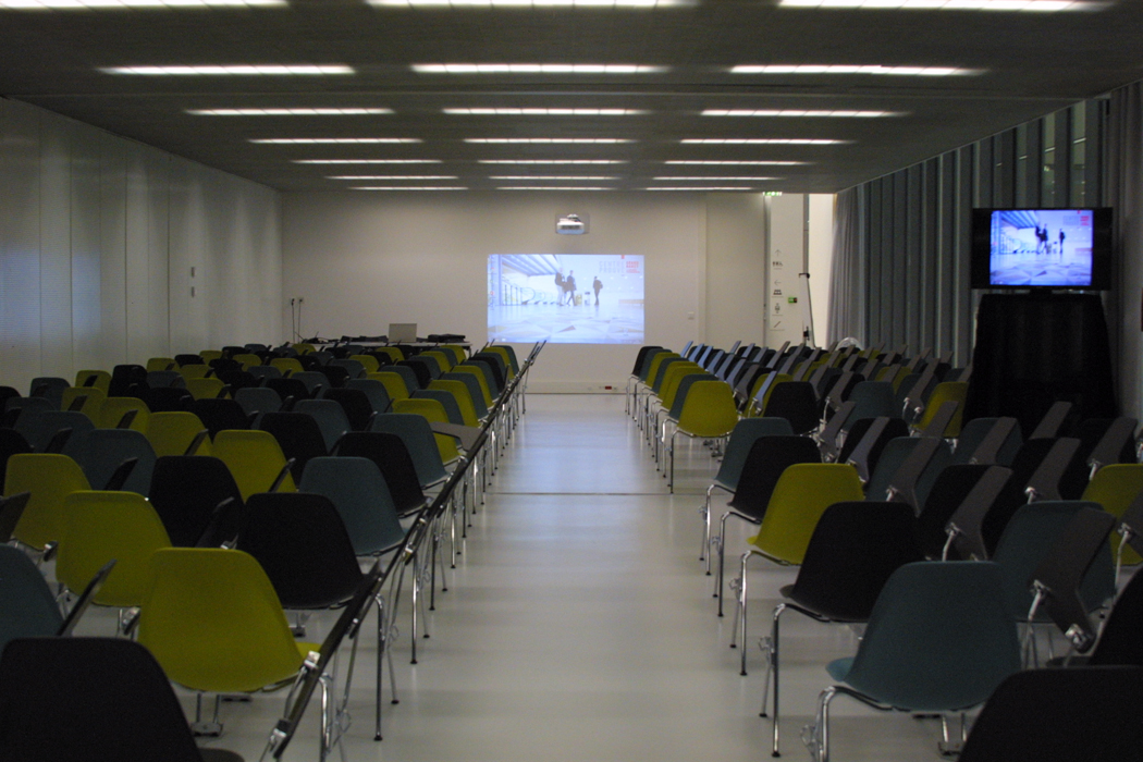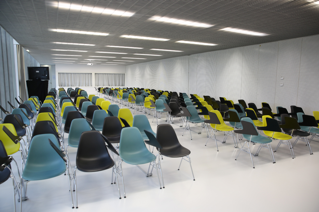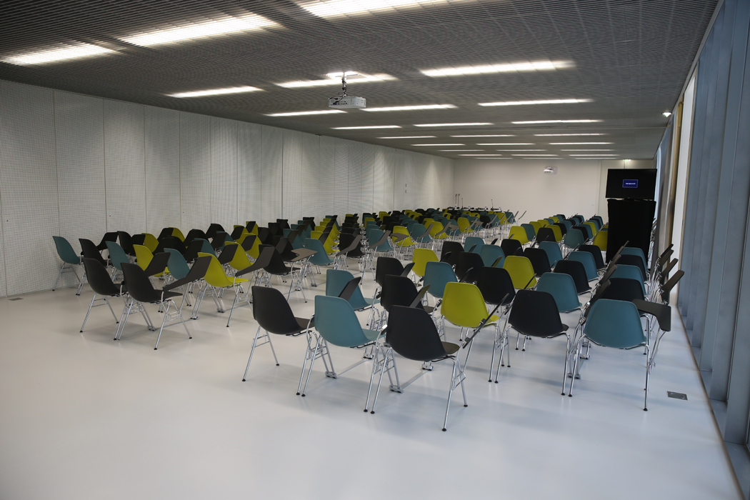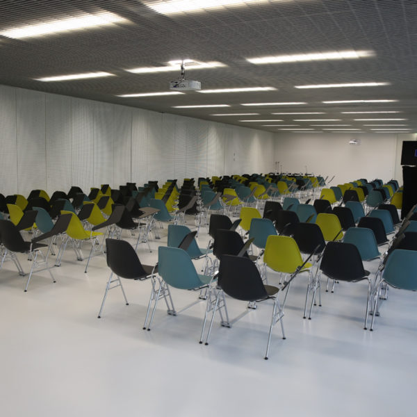 Nous contacterLes salles de réunion 103 et 104 sont mutualisables. Elles peuvent accueillir simultanément 160 personnes dans une configuration classique (chaise + tablettes).