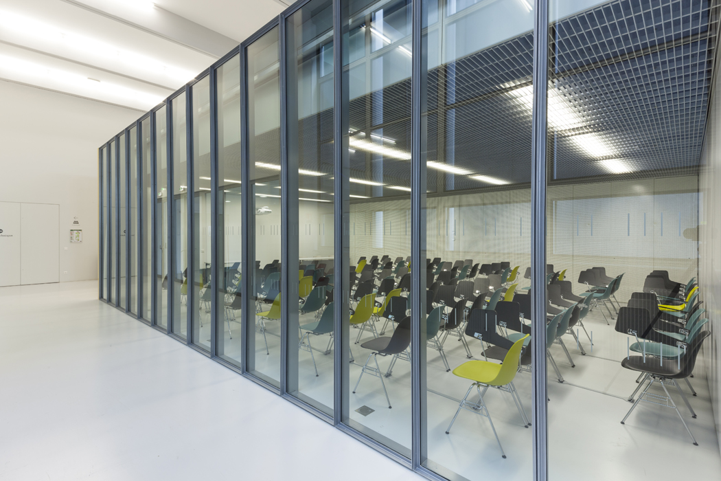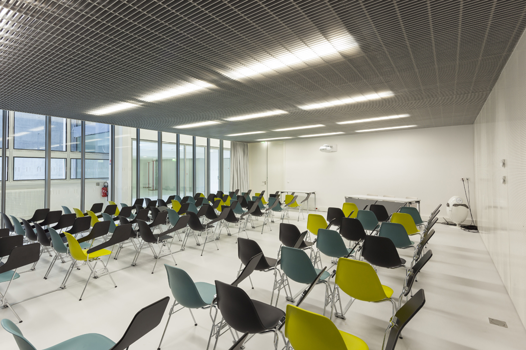 Nous contacterLa salle 105 est une salle de réunion modulable, équipée d’un projecteur full HD à courte focale. Elle peut accueillir 80 personnes dans une configuration classique (chaise + tablettes).