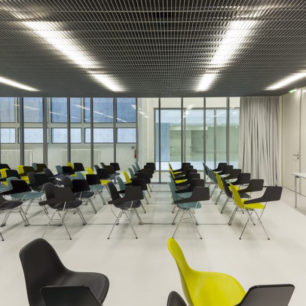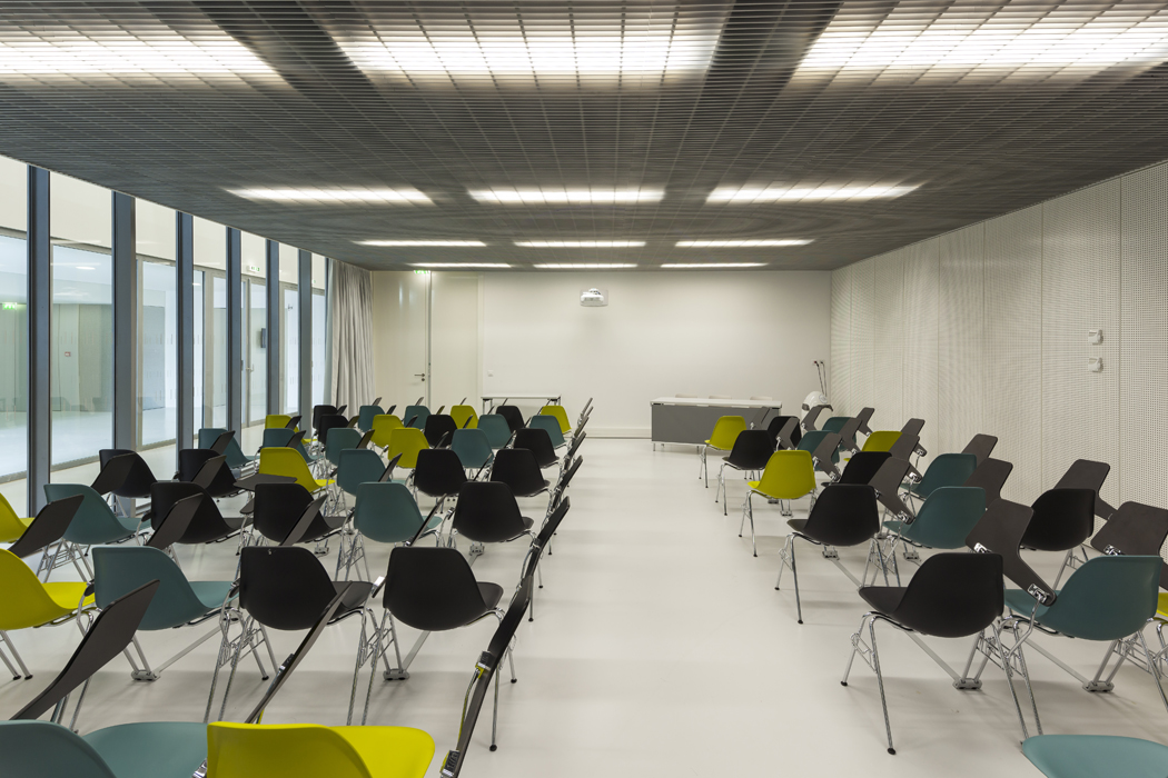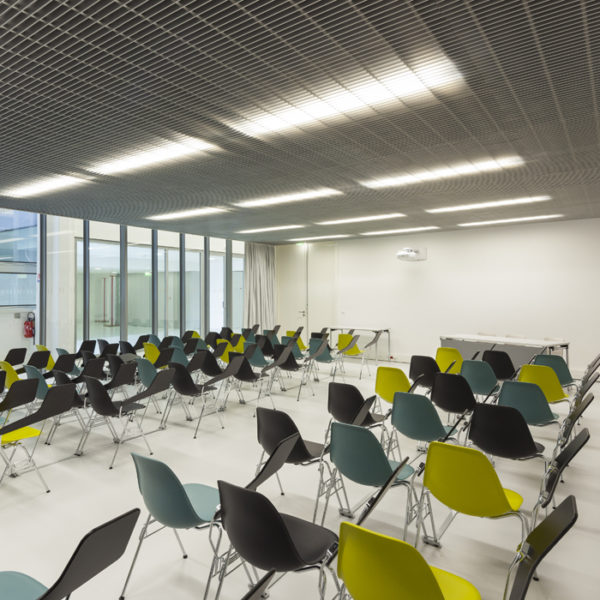 Nous contacterLa salle 106 est une salle de réunion modulable, équipée d’un projecteur full HD à courte focale. Elle peut accueillir 80 personnes dans une configuration classique (chaise + tablettes).